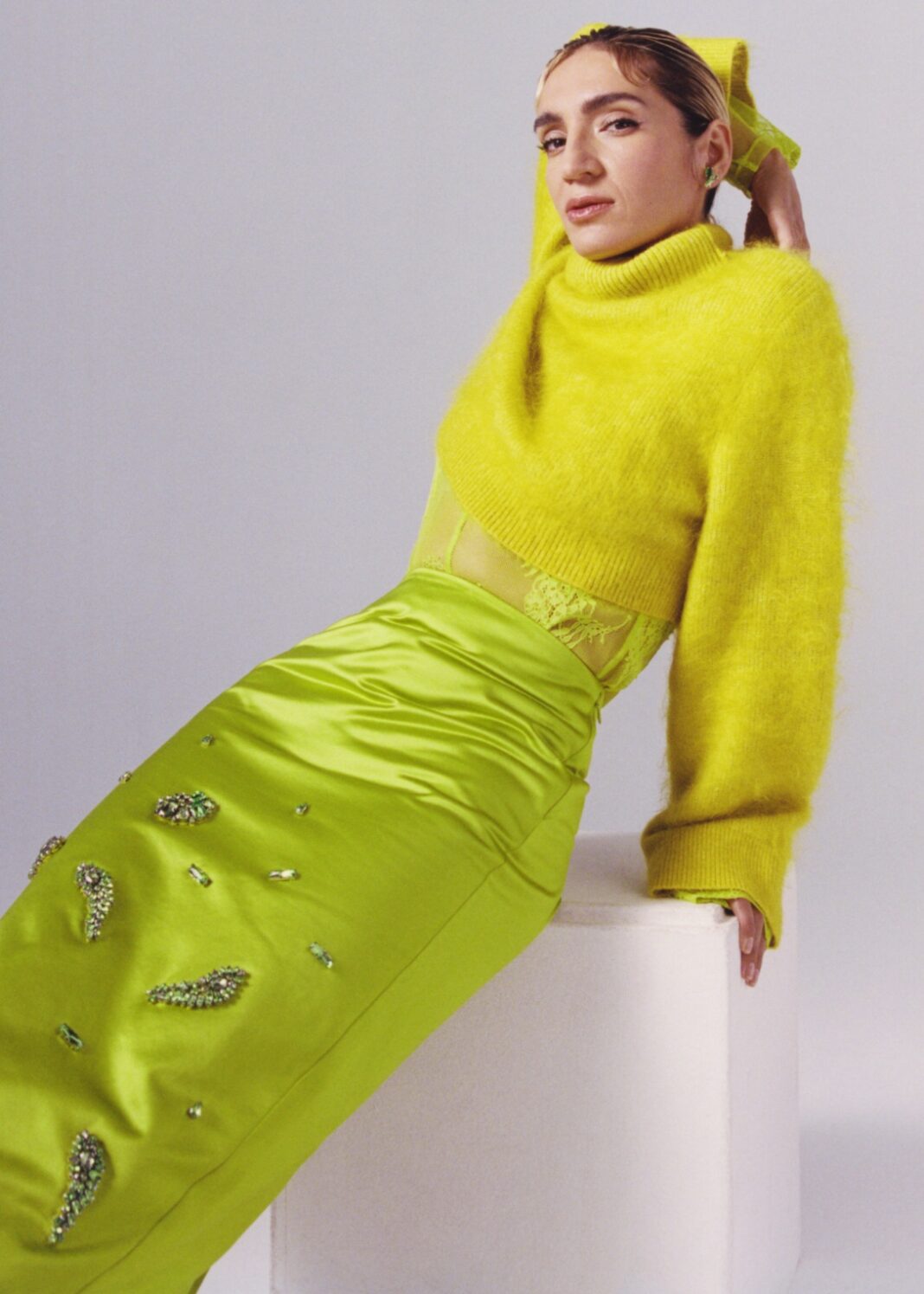 W kolekcji znajdziemy sukienki, kardigany, golfy, bluzki, wąskie spodnie, spódnice i gorsety z paletą kolorów od piaskowego beżu i czerni po soczystą limonkę i ognistą czerwień. Głównymi materiałami są szyfon, koronka, satyna i wełna.